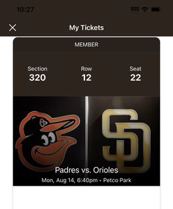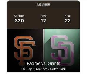 Friday Padres Vs Giants 2023 $20Chula Vista, CA