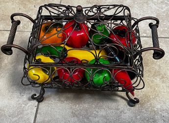 Vintage Italian Merano. Hand Blown Glass Fruit In A Vintage Iron Metal Basket$125Bakersfield, CA