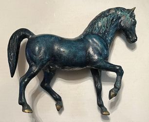 Horse Blue Bronze Statue Figurine Turned Head Sculpture Heavy Vintage 10x8$200Bakersfield, CA
