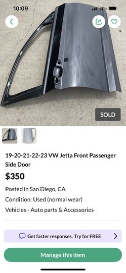 19-20-21-22-23 VW Jetta Front Passenger Side Door $350San Diego, CA