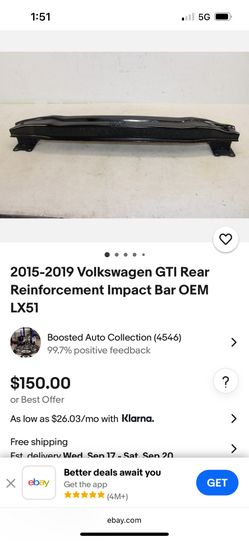 2015-2019 VW GTI Rear Bumper Reinforcement OEM New$150San Diego, CA