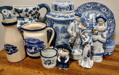 LOT OF 10 VINTAGE COLLECTIBLE, BLUE AND WHITE Ceramics/$50Spokane, WA