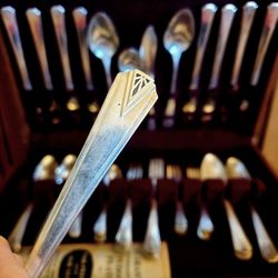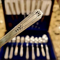 ONEIDA COMMUNITY DEAUVILLE 1929 SILVERPLATE ART DECO SILVERWARE IN WOOD BOX FOR 8, 48 PC SHINY$225Mesa, AZ