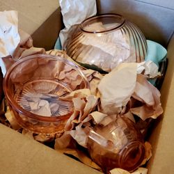 Huge Box Of Pink Depression Glass Bowls Cups Trays Compote 1920's Vintage$150Mesa, AZ