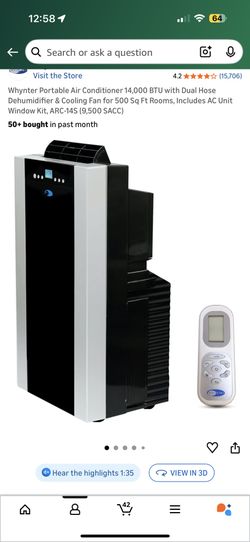 Whynter Portable Air Conditioner 14,000 BTU – Dual Hose – Complete Set w/ Remote & Window Kit$300Chula Vista, CA