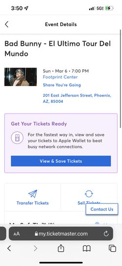 Two Bad Bunny Tickets Concert March 6th$350Peoria, AZ