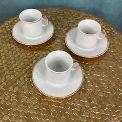 Set Of 3 White With Gold Accent Espresso Mugs And Saucers$30Los Angeles, CA