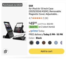 ESR iPad Air 13” Case With Removable Magnetic Cover And Adjustable Height$20Irwindale, CA