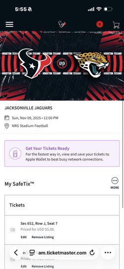 Houston Texans 2 Tickets Jacksonville Jaguars$110Houston, TX