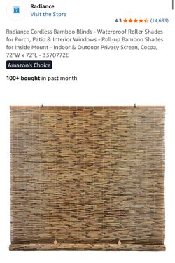 Cordless Bamboo Blinds - Waterproof Roller Shades for Porch, Patio & Interior Windows$50Sacramento, CA