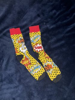 Yellow and red comic book themed socks men’s size large$13North Springfield, VA