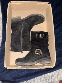 Forever Black suede biker heel zip up boots with 2 gold buckles women’s size 7$23Lovettsville, VA