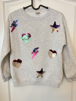 EUC ZARA Sequined Heart Pullover Sweatshirt Sweater GRAY Size Girls SZ 11-12$12Rancho Cordova, CA