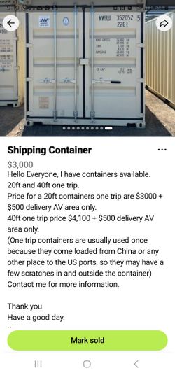 Shipping Container $2,800Los Angeles, CA