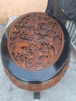 Antique Vintage Hand Carved Oriental Chinese Wooden Table Oval Shape, Glass Cover. 6 Side Table Or Chairs.$600North Miami Beach, FL