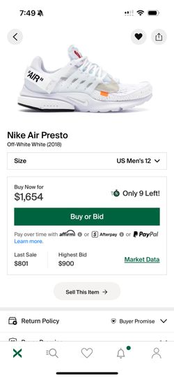 Nike Air Presto Off White Size 12$850Bellevue, WA