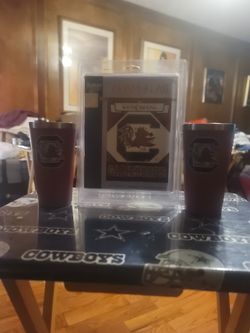 South Carolina Gamecocks Flag And 2 Deplux Steel Cups$40Smoke Rise, GA