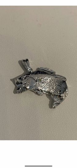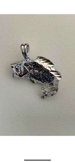 Silver Jumping Bass Fish Pendant Charm Rhodium Plated 3D Diamond-Cut Sport Fish New$50Orlando, FL