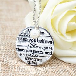 You are Braver than You Believe, Stronger than You Seem Pendant Necklace w/ Pearl$9Seattle, WA