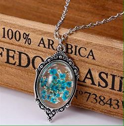 Real Blue Flowers Pendant Necklace, Silver colored Chain$8Marysville, WA