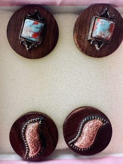 Vintage ~ 2 Pairs of 1” Round Wooden Clip Earrings ~ Types Of Center Stones(?) Unknown$10Bonney Lake, WA