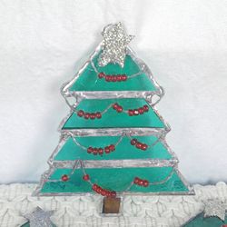 Set Of 6 Stained Glass Christmas Tree Suncatcher Ornaments 4.5" Holiday Decor $28Ocean Brz Pk, FL