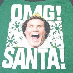 Women's Med Elf Movie Will Ferrel "Omg Santa!” Green Shirt 3/4 Sleeve Christmas $12Ocean Brz Pk, FL