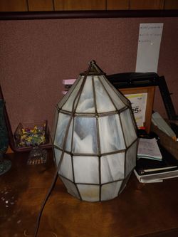 Vintage Mid- Century, Tiffany Style 12 Sided Leaded Slag Glass Hanging Light Fixture
