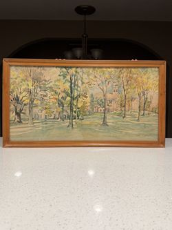 Romantic Moody Vintage Watercolor Landscape – Historic Estate Scene – Framed 28”$125Westminster, CA