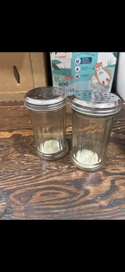 2 Vtg Restaurant Style Cheese Spice Shakers Vertical Rib Glass Chrome Lid As Is$15Chino, CA