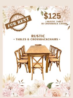 Rustic tables And Crossback Chairs $125San Bernardino, CA