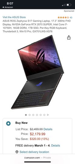 ASUS Rog Zephyrus S17 Used$1,600Fairfax, VA
