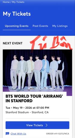 May 19 - BTS ticket at Stanford Stadium, CA Section 213 - E -$400Seattle, WA