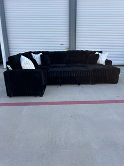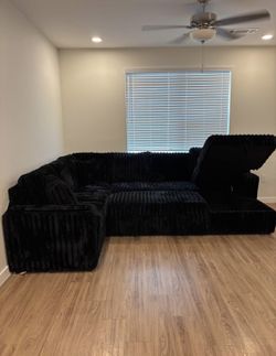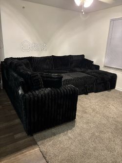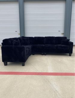 Black Fluffy Corduroy Sectional Couch Delivery Available 🚚$680Katy, TX