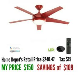 Windward IV 52 in. Indoor LED Red Ceiling Fan with Light and Remote Works with Google Assistant and Alexa