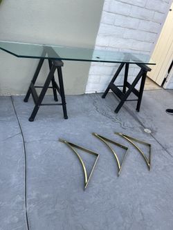 A vintage Floating Wall Mounted Brass Glass Shelf , Desk, Hall Table Hollywood Regency $1,250Orange, CA