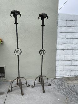 Two Vintage Tall Rod Iron Candle Holders Gothic Mid Evil$100Orange, CA