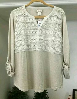 Style & Co Women's Tan 1/4 Button V Neck Roll Tab Sleeve Top Size XL NWT$9Hesperia, CA