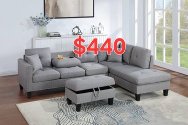 Elegant Studded Sofa Set w Theater Cup Holder, Ottoman Included!!$440Rancho Cucamonga, CA