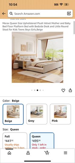 Merax Queen Size Upholstered Plush Velvet Mother and Baby Bed Floor Platform Bed with Bedside Desk and Little Round Stool for Kids Teens Boys Girls,Be$299Fort Lauderdale, FL