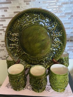 Vintage Green Tam O Shanter Tavern Porcelain Platter And 5 Pedestal Mugs$35Pawnee, OK