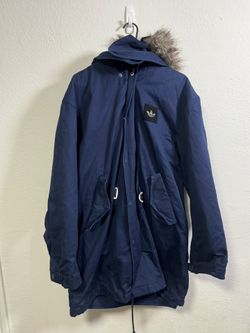 RARE~Adidas LONG PARKA Winter Jacket sweat shirt superstar Hoody Coat Men M Blue$100Portland, OR