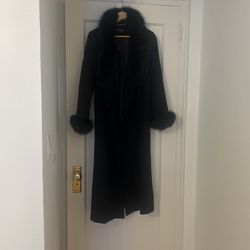 Black, elegant pea coat with fur around the neck size 4$80Queens, NY