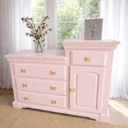 Blush Pink Vintage-Style BOHO Dresser with Gold Bow Hardware + Mirror Nursery SWEET 🩷$499Redondo Beach, CA
