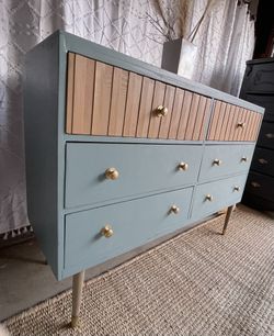 Modern BOHO Farmhouse Gray Dresser with Wood Top & Gold Hardware$750Redondo Beach, CA