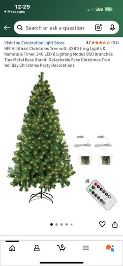 6ft Artificial Christmas Tree With USB String Lights $85Corona, CA