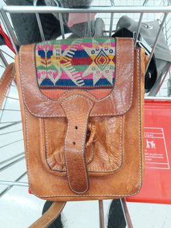 Vintage leather satchel bag with yarn design$15San Diego, CA