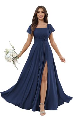 “New” Beautiful Navy Square Neck Chiffon Formal Dress Size 12$50Arrowhed Farm, CA