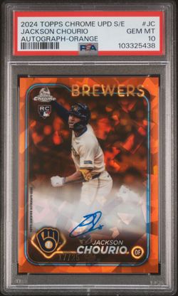2024 TOPPS CHROME RC JACKSON CHOURIO /25 ORANGE π AUTO PSA 10π₯ $3,500San Diego, CA