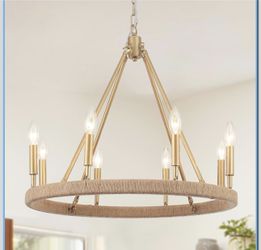 Gold Wagon Wheel Chandelier, 8-Lights Gold Farmhouse Chandelier for Dining Room, 24" Rustic Round Pendant Light$120Chula Vista, CA